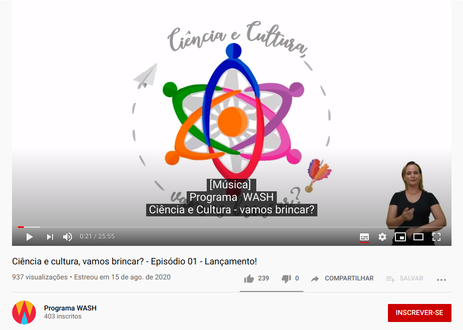 Muita ciência, com diversão, na estreia do Projeto Ciência e Cultura, vamos brincar?, no sábado passado, dia 15/08, no Canal do WASH, no YouTube.