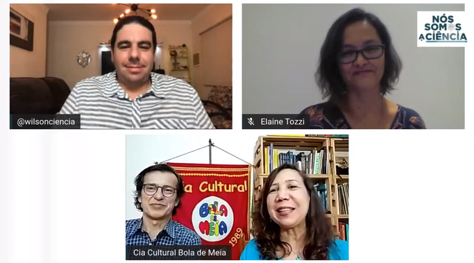 Outro ponto que pesou na divulgação do Projeto Ciência e Cultura foi a live realizada na quinta-feira, dia 13 de agosto, no Canal do Movimento Nós Somos a Ciência, com a participação de Elaine da Silva Tozzi, representante do Programa WASH e idealizadora do Ciência e Cultura; de Jacque e Celso Pan, da Cia Cultural Bola de Meia; e mediada, por Wil Namen, do Nós Somos a Ciência. Pesquisando no Canal do Movimento Nós Somos a Ciência, essa live está entre as três mais visualizadas do Movimento.
