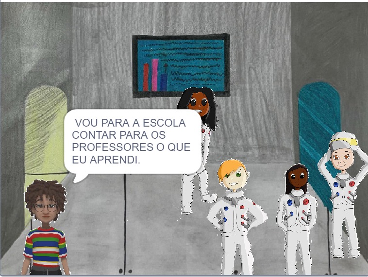 Com o trabalho ainda remoto, muitas conversas e discussões em grupo de Whatsapp e o comprometimento de todos, ele notou grande evolução dos alunos. “O desenvolvimento da segunda parte foi mais rápido, com boas ideias. Chamou a atenção dos professores a agilidade para criar o roteiro e, até mesmo, na programação; não precisei mexer em nada do código”, registra o professor, sobre o crescimento em autonomia dos jovens envolvidos.