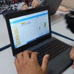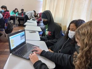 A partir daí, os professores começaram a treinar uma turma de alunas, por meio das bolsistas mais antigas. Assim foi possível participar da Semana Scratch, com a criação de um diálogo com as premissas do PEI, usando a linguagem Scratch.