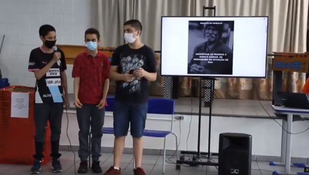 Os motivos, os riscos e as consequências de se viver nas ruas são abordados na pesquisa do grupo de estudantes Carlos, Douglas, João e Geovanna, (da EMEF Gonzaguinha).
