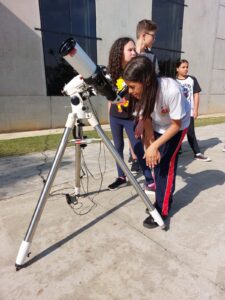 As alunas e alunos estudaram sobre cartas celestes, órbitas, astronomia de posição, observaram o Sol pelo telescópio, e conseguiram visualizar, na prática, as elipses (figura plana estudada na geometria analítica, classificada como uma cônica, que tem, entre suas aplicações, a análise de movimentos de astros). “Estudaram, também, sobre a velocidade de escape, gravidade e potencial gravitacional. Em outro momento, realizaram a construção e destruição do sistema solar através da ferramenta Noirlab Teen Astronomy Cafe, que pode ser acessada de casa através do site: https://noirlab.edu/public/education/TAC-ToGo/”, informa Maria Tereza.